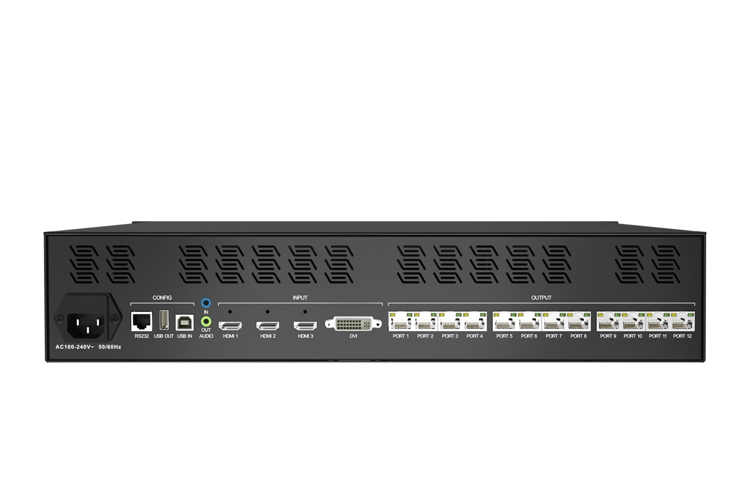 - Output: 12 x Gigabit Ethernet ports, supporting Ethernet port backup or sender backup.
