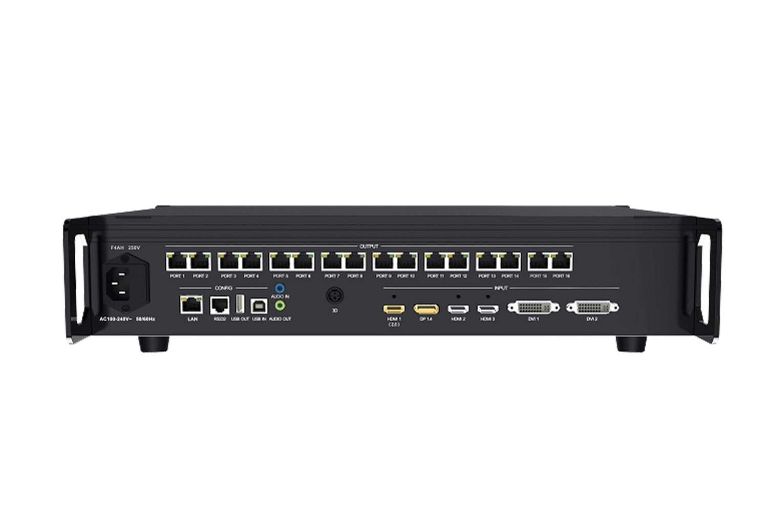 X16E is a controller possessing powerful video signal input and processing capacity. It supports 4K inputs with DP 1.2 and HDMI 2.0 ports, and 2K inputs with HDMI 1.4 and DVI ports, and the multiple signals can be seamlessly switched. Equipped with 16 Gigabit Ethernet ports, the controller can greatly meet your different demands. Additionally, X16E boasts abundant practical functions that enable flexible screen control and high-quality image display.