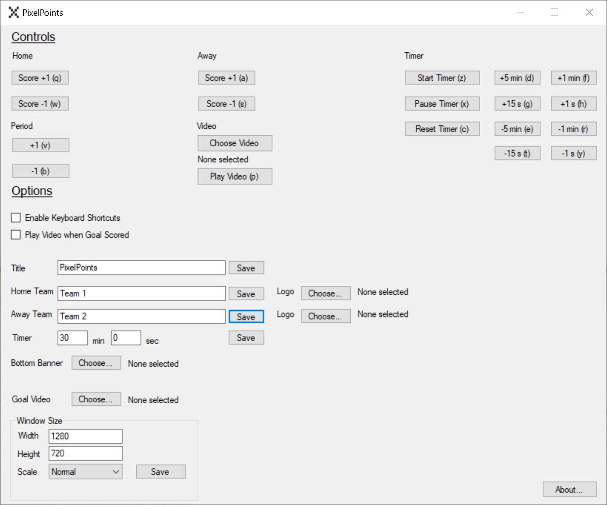- Scoreboard title, team names and logos can be changed on-the-fly.